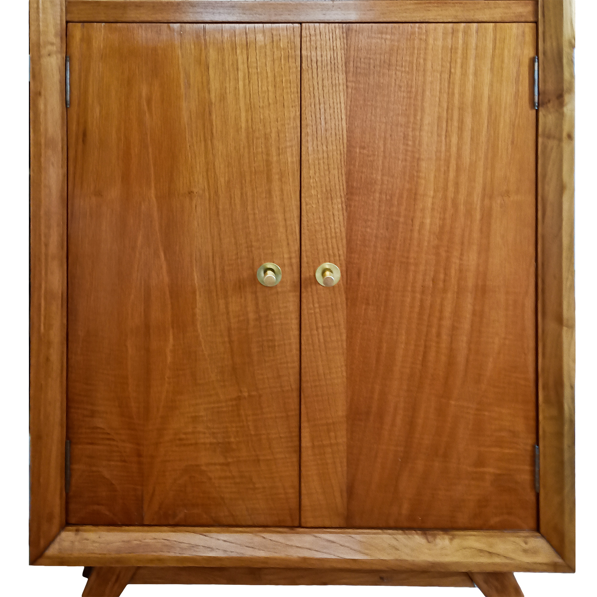 Paire de bibliothèques étroites en placage de frêne. Vernis au tampon satiné.