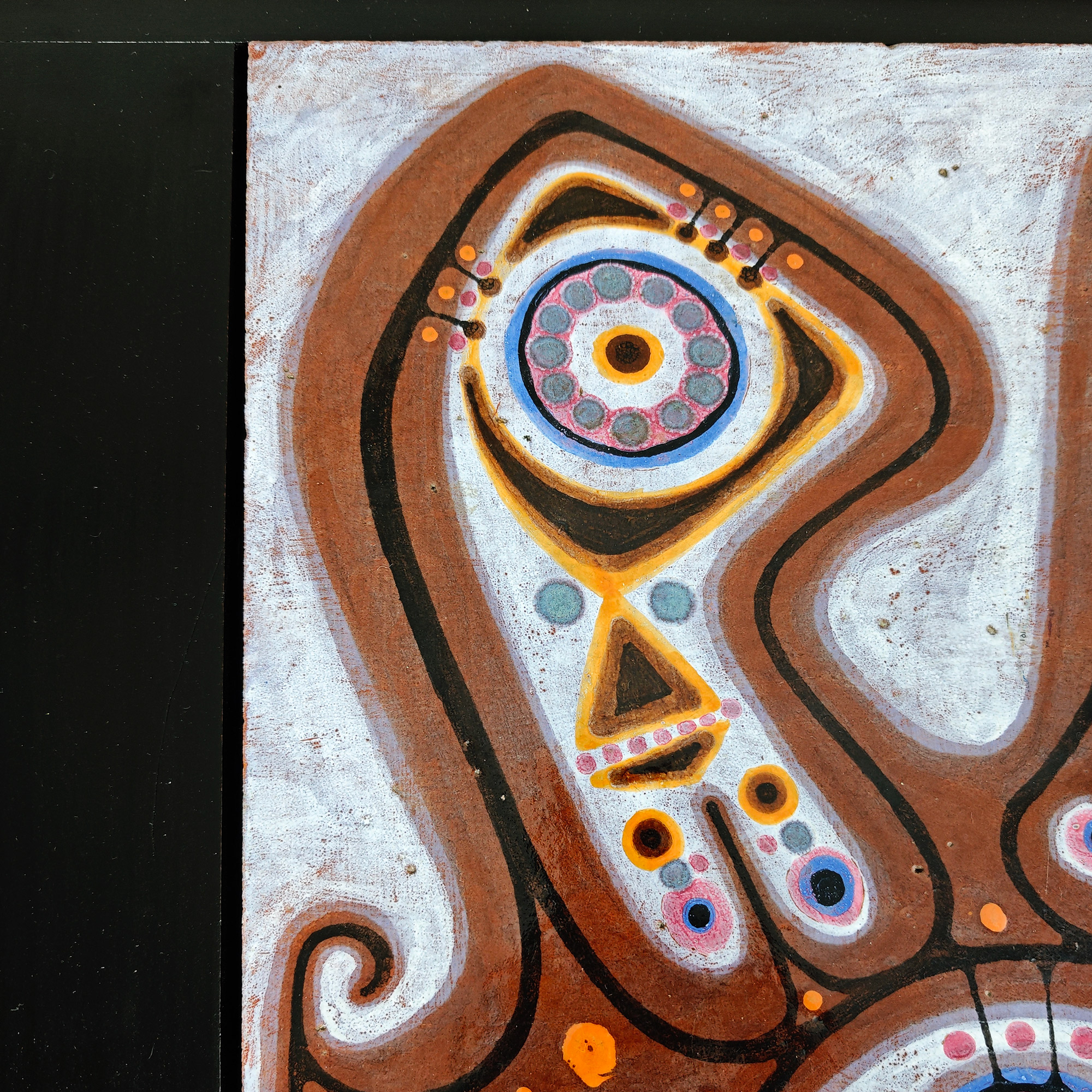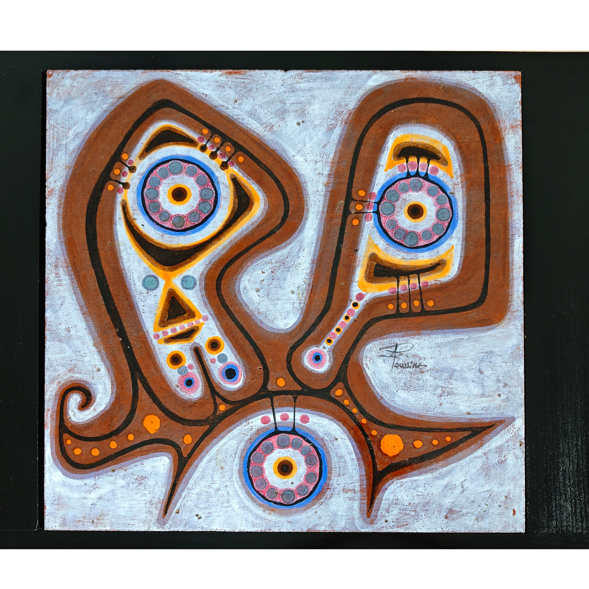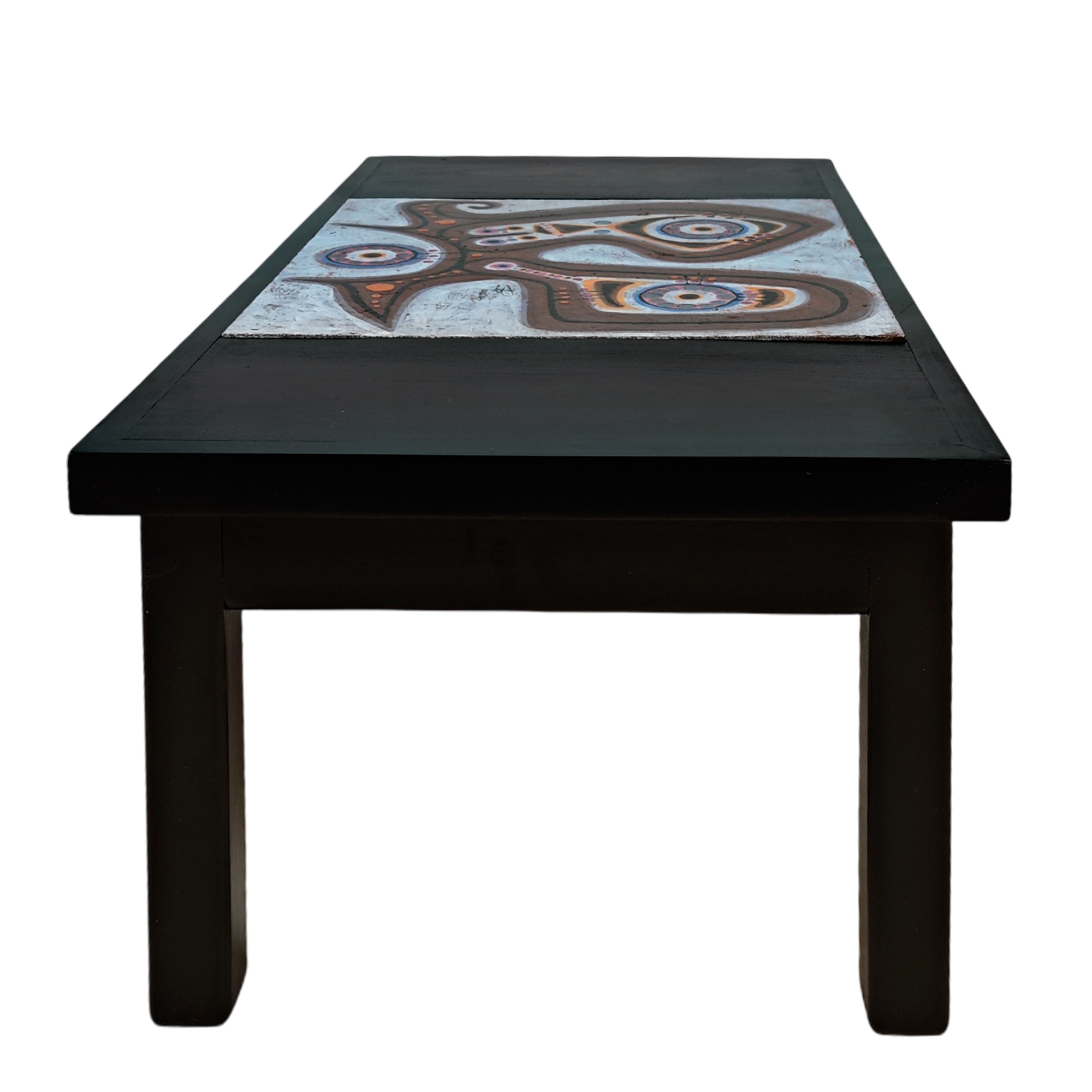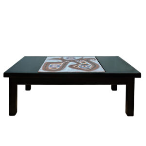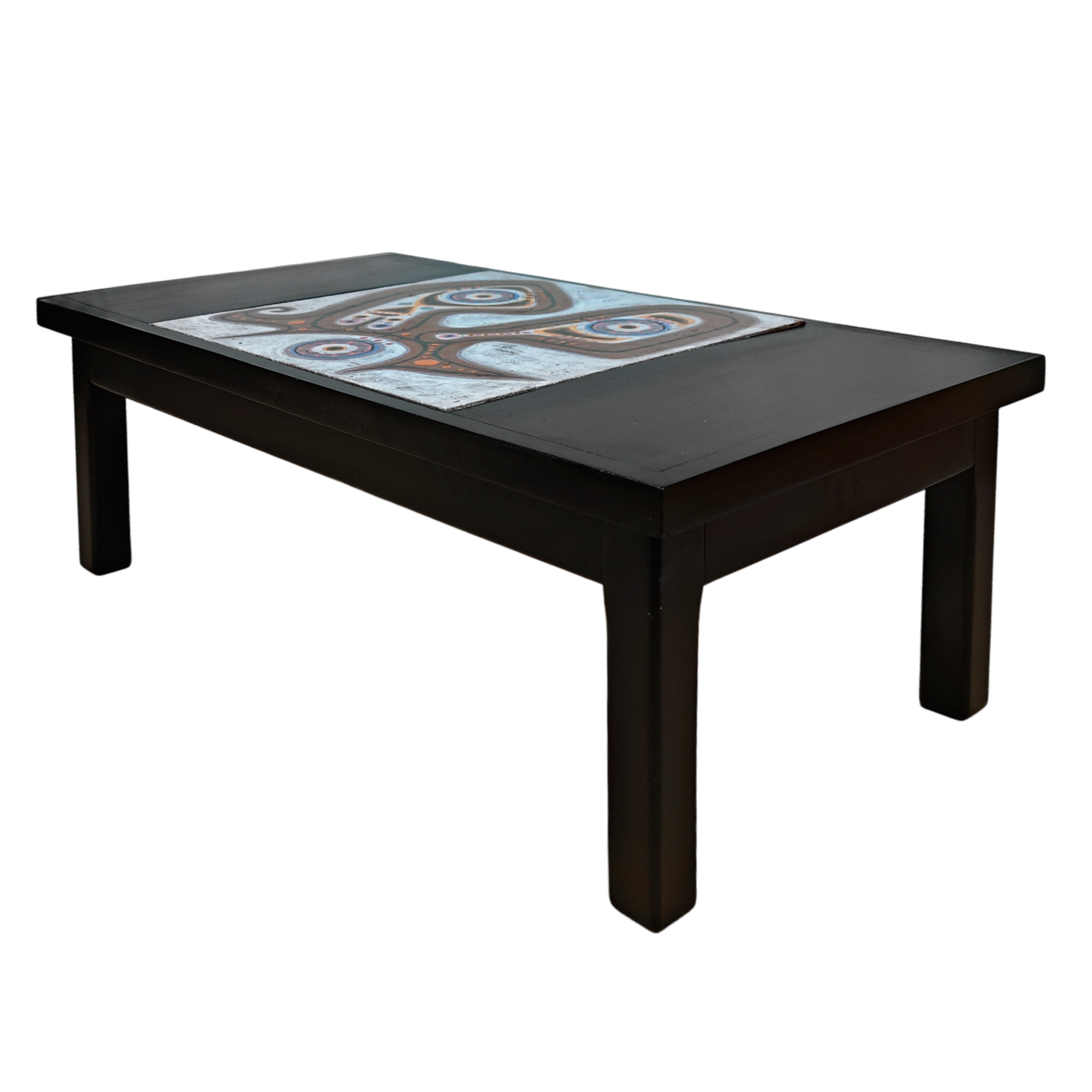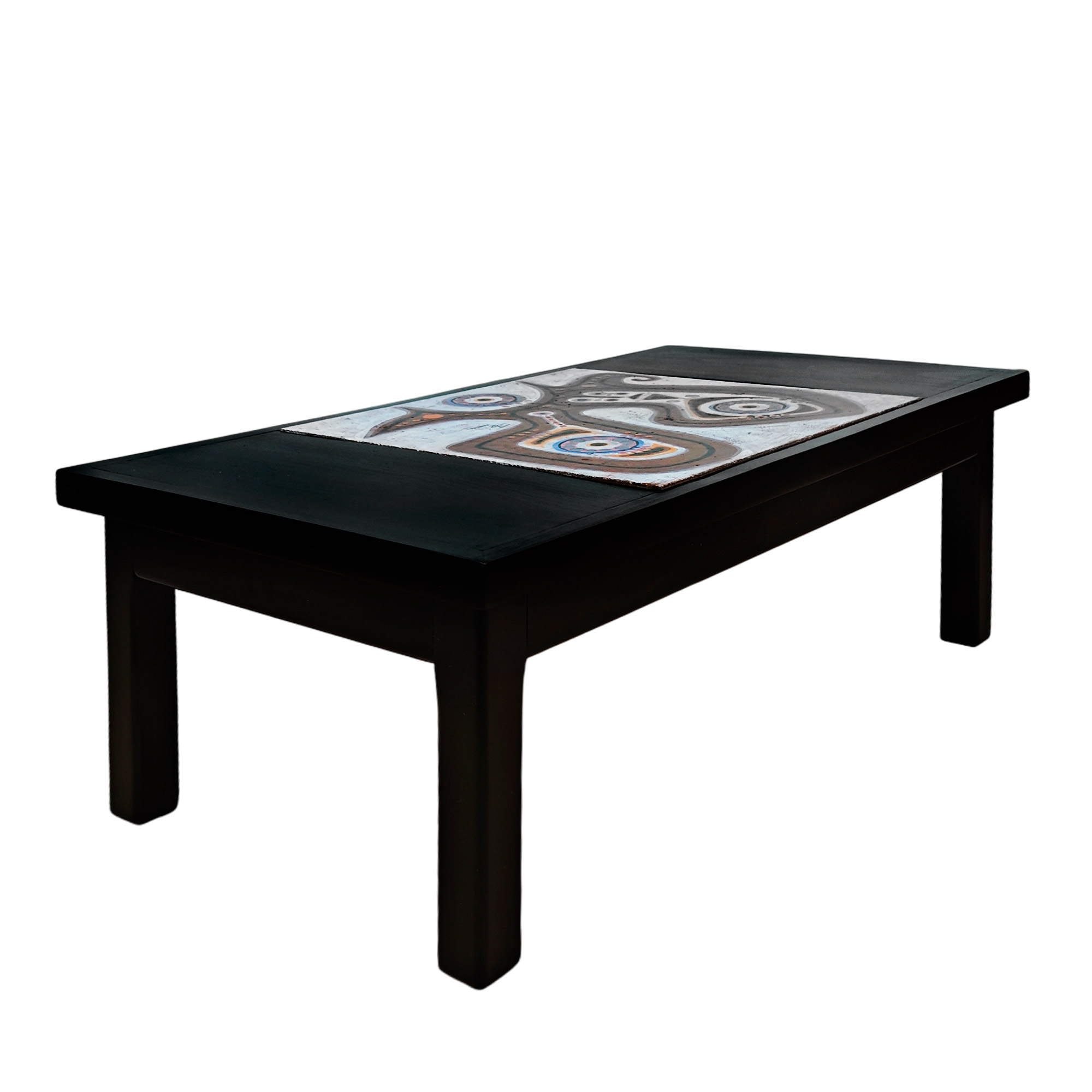 Coffee table in dark stained and varnished wood made around a ceramic piece by Jaques Poussine.
