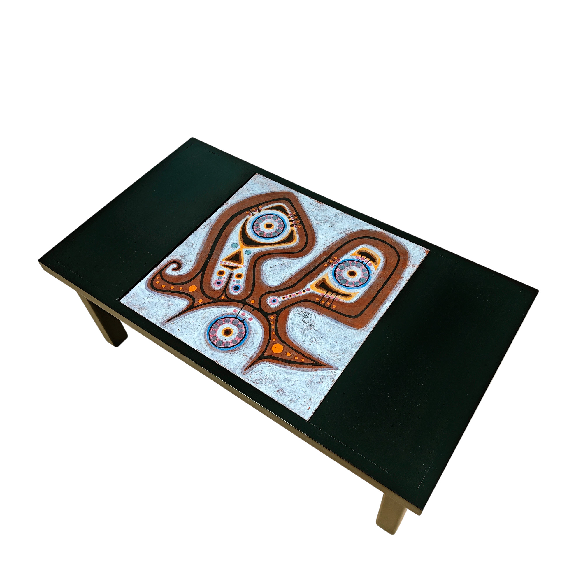 Coffee table with ceramic by Poussine – France 1970