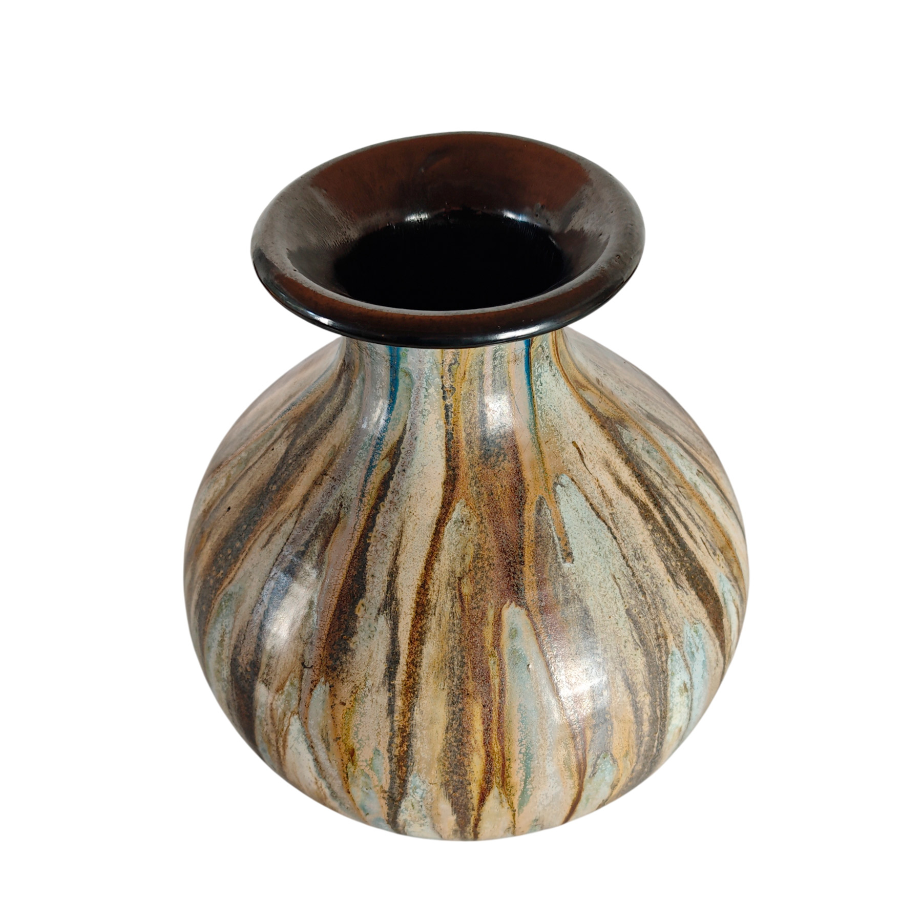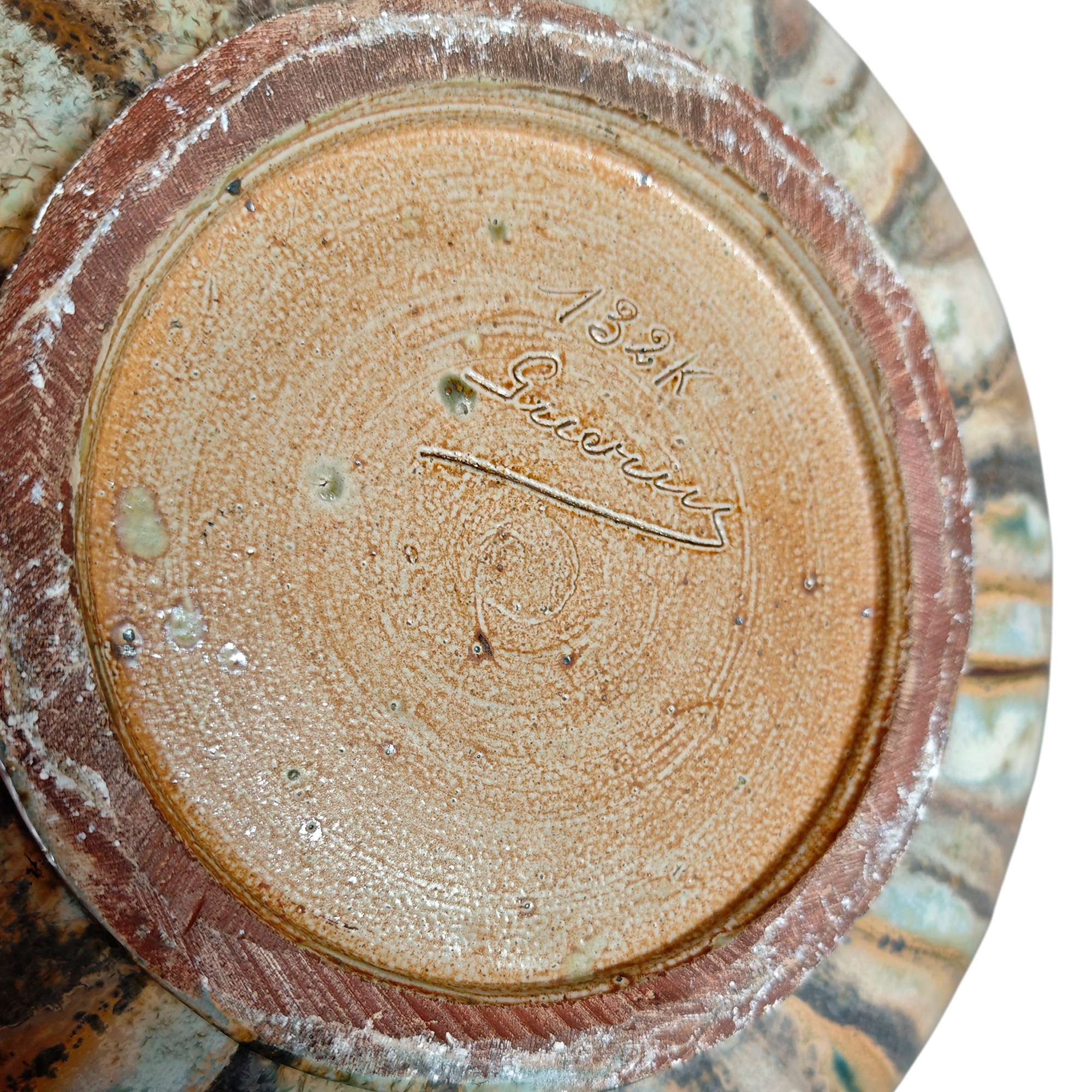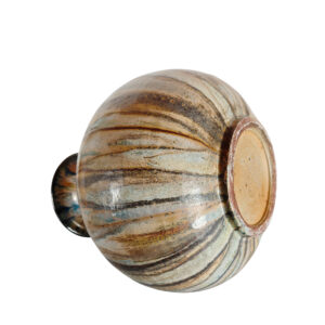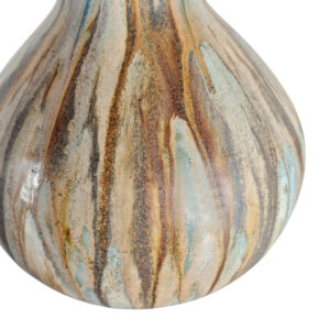 Large salt glazed stoneware vase in shades of pale blue, brown and beige.