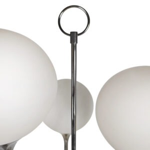 “Trumpet” table lamp in nickel-plated brass and white opaline glass.